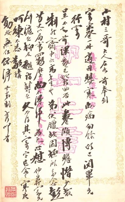陶氏于光绪五年(1879)四月任湖南学政,其使用的“守如上言”花笺,应是当地文友陈守愚所赠。光绪六年(1880)六月,他因母丧守制卸任返乡。札中有“弟伏腊故园极所系念。彭芍丈以局事羁縻,尚不得归,为之心惄。”云云,意思是他很想回乡,但湖南巡抚彭祖贤以“局事”(修通志局之事)相“羁縻,尚不得归”。因此,这封信札是陶方琦在光绪六年六月卸任之前所写,据札中“适因婴寒,卧病旬余”“寒夜呵冻”等语,知此札系年当为光绪五年末到六年初之间。