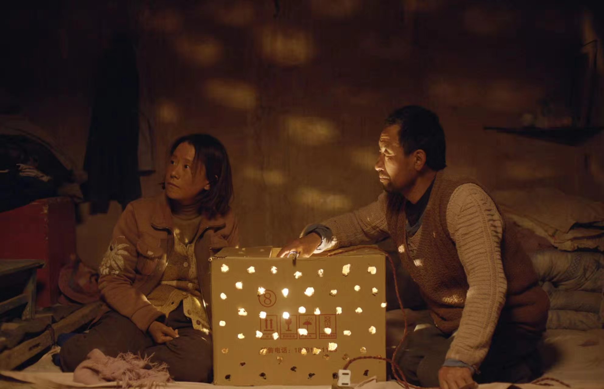 李睿珺:对我来说,需要借助一些具体的事物递进人物情感,当然也希望观众看到一些苦涩生活中的温馨时刻。比如孵小鸡,体现了农民日常的智慧。过去有的家庭不养鸡,只是买几个鸡蛋,照灯泡孵化。通常接一只15瓦的灯泡,孵上之后连续20多天不能断电。温度过高就有一个问题,鸡蛋容易被烤干。为了散热又保持恒温,就只能在箱子上扎很多小窟窿。电影中,光透过小窟窿打在墙壁周围,像星星。如果没有这样的生活经验,可能误以为单纯是为了营造一个浪漫的气氛。事实上,这些事物虽然看起来浪漫,却不是“飘在表面”的浪漫化,更多是有现实的基底的。