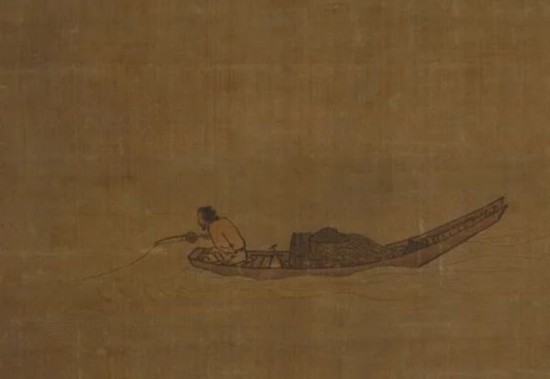 《寒江独钓图》传为宋代马远创作的一幅山水画。画中,作者以严谨的铁线描,画一叶扁舟,上有一位老翁俯身垂钓,船旁以淡墨寥寥数笔勾出水纹,四周都是空白。画家画得很少,但画面并不空。反而令人觉得江水浩渺,寒气逼人。而且还觉得空白之处有一种语言难以表述的意趣,是空疏寂静,还是萧条淡泊,真令人思之不尽。这种诗-般耐人寻味的境界,是画家的心灵与自然结合的产物,在艺术上则是利用虚实结合而产生的结果。