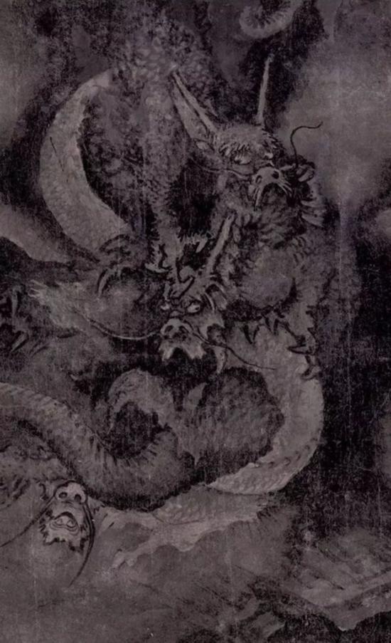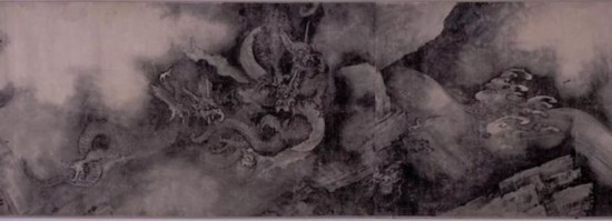 《五龙图卷》卷末有“所斋”之印,据称为陈容之作。《五龙图卷》共画五龙,分置于山石、云雾和急流之中。五龙动态各不相同,生动有致,阴森恐怖,极富想象力。构图上虚实相映,有张有弛,气势惊人。