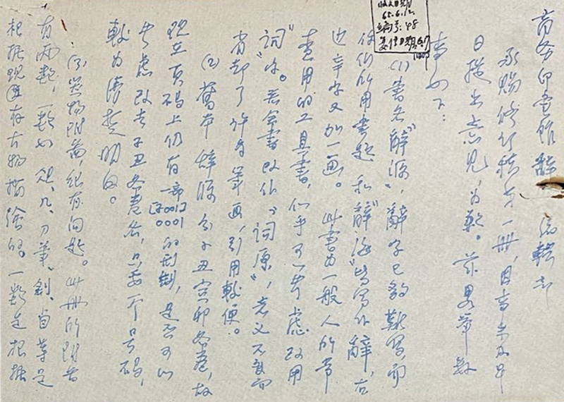 陈梦家致商务印书馆辞书编辑部