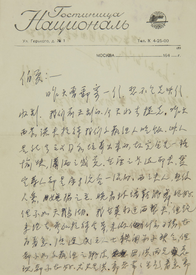 此外,记者看到,展览也设有一些小板块。如作家“丁玲”板块,有丁玲致陈明信,也有冯雪峰致丁玲信。丁玲致陈明信写于1949年4月13日,地点是莫斯科。1949年3月24日,中国妇女第一次全国代表大会在中南海怀仁堂举行预备会,会上选出出席世界拥护和平大会的妇女代表,她们是:李德全、丁玲、龚普生、陆璀、吴青。3月27日,《人民日报》在第三版刊登消息《出席巴黎和平大会 中国代表团已正式组成 郭沫若任团长日内出国》:“中国代表团选出郭沫若为代表团团长,刘宁一、马寅初为副团长,钱俊瑞为秘书长。并决定于日内出国,在四月二十日以前赶到巴黎。”代表团于4月11日下午抵达莫斯科。此信内容是关于代表团在莫斯科的活动以及丁玲与代表团成员、莫斯科文艺界接待人员的交往情况。而在冯雪峰致丁玲信中,则反映了两人深厚的友谊。此时,丁玲已去延安,冯雪峰代为处理了丁玲母亲的相关事情,并问道其创作情况等。