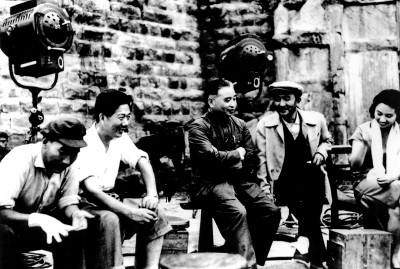 从右至左:于蓝、赵丹、汪洋(原北影厂厂长)、导演水华、摄影师朱今明 中国电影资料馆供图