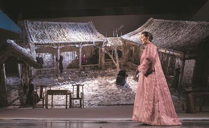 原雨饰演曾思懿,作为一位“主事”曾家的大奶奶,曾文清与愫方情感之间的第三者,将对丈夫的失意和对情敌的嫉恨凝聚成对愫方无穷无尽的挑衅和冲击。原雨充分发挥了她美艳的形象优势,将一个“妒妇”的尖刻妒恨之心反衬在美的身段与容貌之前,棱角尖锐而刺目裂心。然而,曾思懿不只是一个飞扬跋扈的妒妇,她还是一个传统家庭中的无辜而可悲的女性受害者——她的婚姻悲剧是无数传统中国女性无自由的命运悲剧。曾思懿的恨是植根于痛,她的怒是燃烧于悲,她无辜而痛、无望而悲。原雨的表演,在极具张力地演绎曾思懿作为妒妇的恨和怒的同时,非常细腻地揭示了角色内心中不可释放和解脱的痛和悲。在第二幕,曾思懿强逼即将出行的丈夫三人当面退还愫方给他的私信,曾文清阻挡无望,不得不忍心将信亲手交还给被妻子专门叫来的愫方。在愫方以沉默、文清以悲号离去之后,作为胜利者的曾思懿蓦然一笑而陷入沉痛和困顿。原雨的嘴角抽搐、身软似散,无意识地将台中的椅子拖到左侧的桌边放好。这是令我第二次泪涌双眼的时刻。