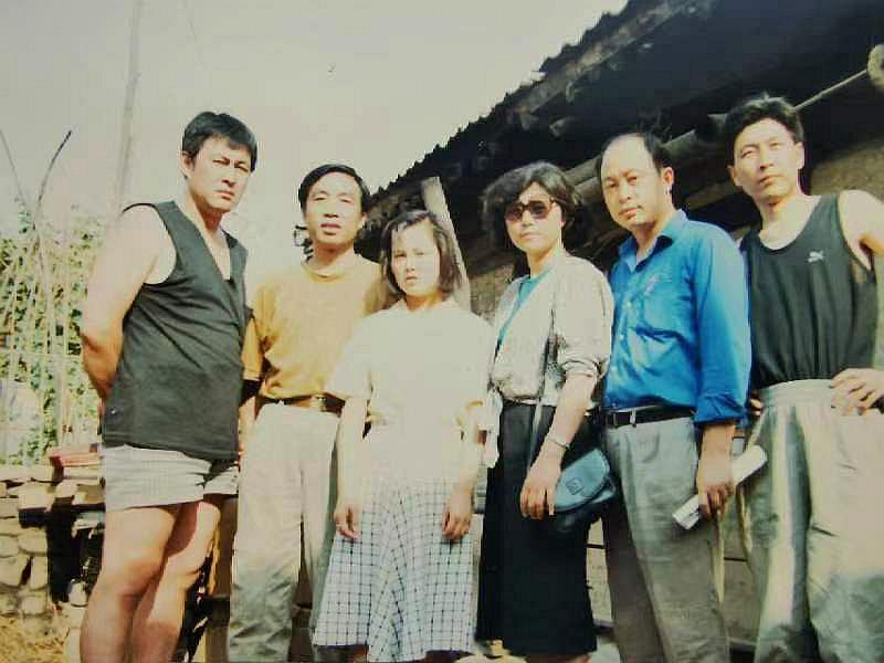 在陕北宜川县访问《苍凉青春》人物二万子的原型二缠子(前排右一)、北京女知青王村钰的原型王春英(前排右二)、严彬(后排左一)、陆树铭(后排左二)、雷铁流(后排右一)王逸虹(前排左一)白描(前排左二)