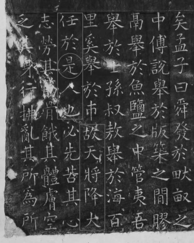 最近关于《孟子》中是“天降大任于是人也”,还是“天降大任于斯人也”,引起众多网友的热议。西安碑林博物馆镇馆之宝《开成石经》清晰地镌刻着“是人”。《开成石经》刻于唐朝,而《孟子》一篇是清康熙朝补刻上的。这至少说明在明清之际应该是“故天将降大任于是人也”。