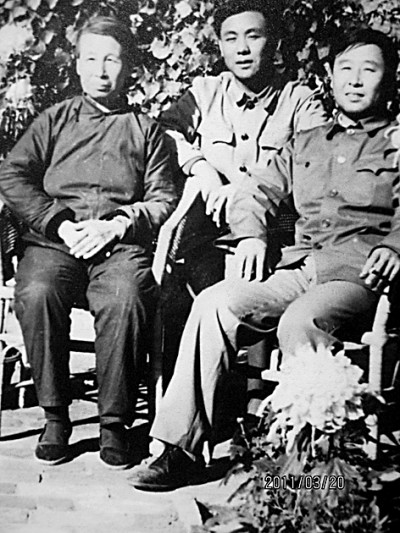 1980年路遥(右一)与大弟弟王卫军和生母马芝兰合影。图片由张艳茜提供