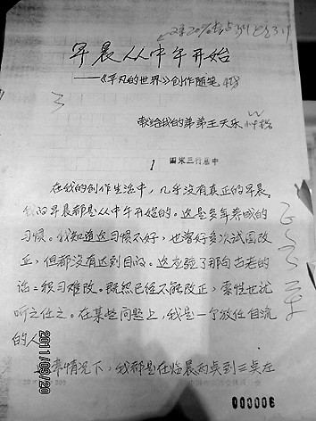 路遥的创作谈《早晨从中午开始》手稿 图片由张艳茜提供