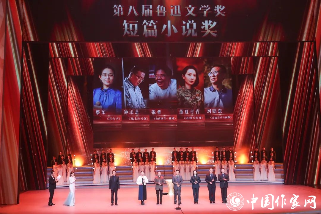 第八届鲁迅文学奖·短篇小说奖得主蔡东、钟求是、董夏青青、张者、责编宗永平代刘建东领奖