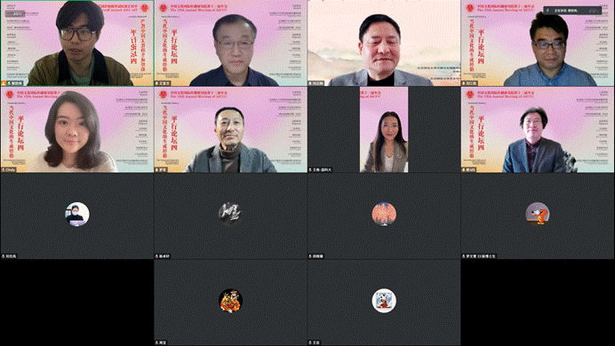 下午,大会的四个平行论坛分别围绕不同主题,于线上同步召开。平行论坛一以“中华文化的天下情怀”为主题展开讨论,从中华优秀思想文化的影像表达与国家传播策略等宏观角度着眼,结合“看中国·外国青年影像计划”等传播实践,探讨了在微观层面,中华文化的强大感染力应如何被发扬和传播。平行论坛二以“中国电影的国际传播”为主题展开研讨,探索了中国文化在web3.0时代应如何通过影像手段完成跨文化传播,在创新和实践中构建中国电影学派,形成具有中国特色的理论话语体系。平行论坛三结合“中国文艺与国家形象的建构”主题,从早期中外动画电影交流史、国家庆典的艺术表达、现实题材电视剧出海等具体艺术实践出发,讨论中国文艺对于国家形象建构的现实意义。平行论坛四以“当代中国文化的生成经验”为主题,探讨了中国当代电影国际传播的困境与应对策略、艺术与科学融合背景下中国工业设计国际影响力提升等具有现实意义的热点话题,体现了学界对现实问题的关注和思考。