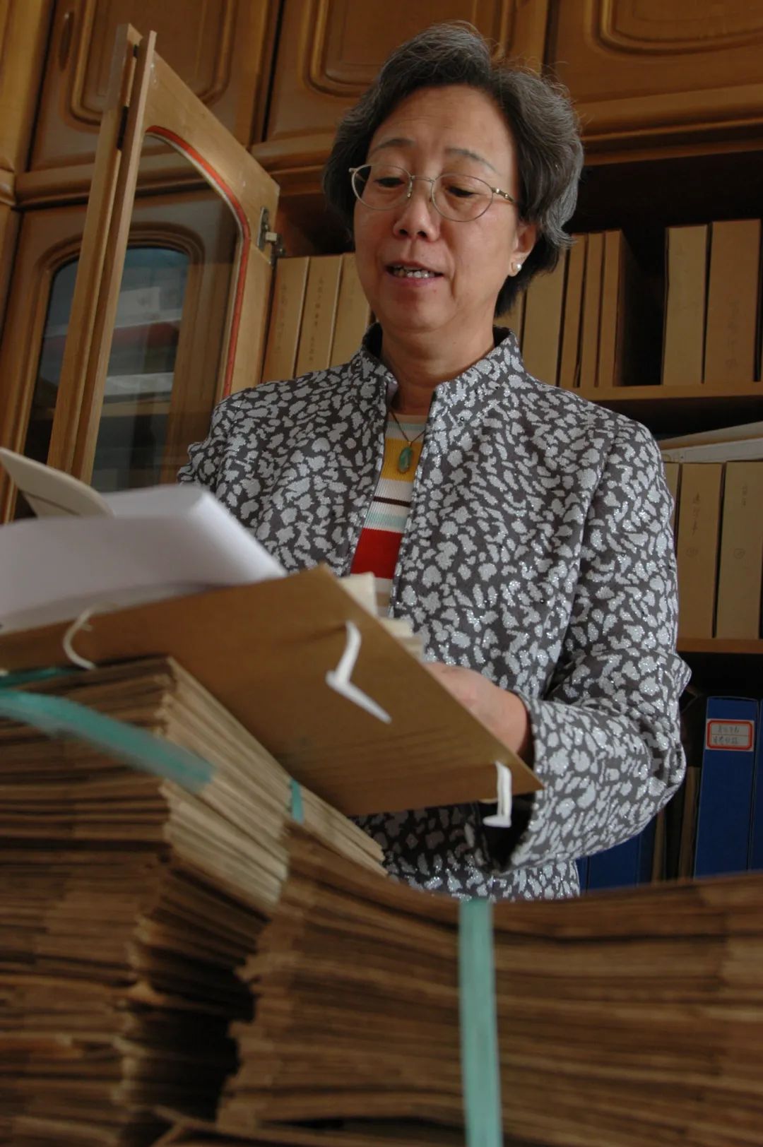 作者在整理父亲阮章竞遗稿,2013 年 2 月(图片由作者提供)
