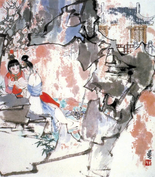 刘旦宅的绘画得以臻此妙境,与他的画外之功——深厚的国学底蕴是分不开的。刘旦宅刚到上海供职于出版社时,他就师从著名历史学家顾颉刚先生学习古文,文学素养同步增进。刘旦宅饱读诗词,红学家兼上海师范大学同事的孙逊先生说:“在刘旦宅的书橱案头,除了大量画册和绘画著作,另一类有特色的藏书就是古典诗词,诸如《全唐诗》和各种选本,他都应有尽有,并时时翻阅。他对于屈原、李白、苏轼的熟悉程度,绝不亚于一个大学的古典文学研究者。”诚如有论者所言,刘旦宅在骨子里是一个诗人。对《红楼梦》,刘旦宅当然更是烂熟于心,他熟悉书中每一段故事、更熟悉每一个人物。唯有如此,才能在作画时得心应手,准确刻画出人物的形象和气质,最终收得以形写神、形神兼备之妙。此外,刘旦宅还会常向红学同仁要来论文新作进行研习,进一步深刻体悟原著的精神。对于人物和情节的理解会自然而然地融入画面中,因此刘旦宅的红楼画格外流露出浓郁的中国古典文化的人文精神,称其画中饱含着诗情、充满了诗意绝非溢美之语。
