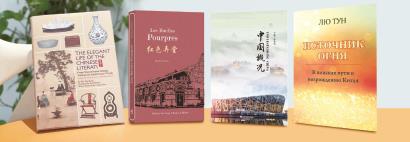从左往右依次为:《长物志》(英文版)、《红色弄堂》(法文版)、《中国概况》中文原版封面、《火种——寻找中国复兴之路》(俄文版)。(均出版方供图) 制图:李洁