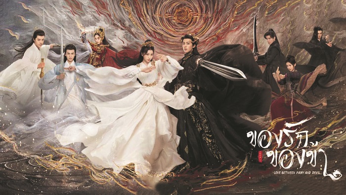 此外,区别于文字因个体阅读差异带来的不确定性,影视剧画面呈现效果与审美风格给观众留下的整体印象一旦形成就会基本稳定。正因如此,《苍兰诀》在视觉效果上用心制作,剧中堪比动漫壁纸的唯美画面与“光特效就花了4亿”的弹幕传言相结合,形成强大的舆论推力,耐心细致的制作方用“科技+创意”向外界证明了什么叫作有文化的“土豪”。例如第二集长珩与容昊在水墨山水画卷中把酒言欢的场景,除却工业化制作技术的加成,一叶孤舟浮于浩渺烟波之上的艺术设计也颇具意境,为展现中国传统审美开辟了新视角。