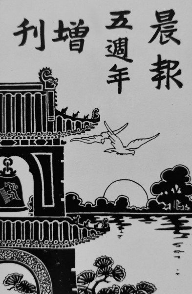 林徽因最早设计的刊头是1923年12月1日出版的《晨报五周年纪念增刊》的封面。远处一轮朝阳正从树林后升起,并将树木投影于波光粼粼的湖面,近处一座巍峨高峻的钟楼在苍松中矗立,楼顶层悬挂着一口刻着夔龙纹的古钟,在悠扬钟声中,一对和平鸽舒展着翅膀向凤凰彩票飞来。对这个封面所包含的寓意,编者在编后语《感谢》中说:“全部图案可以代表四个要素:一、正义;二、光明;三、平和;四、永久。”