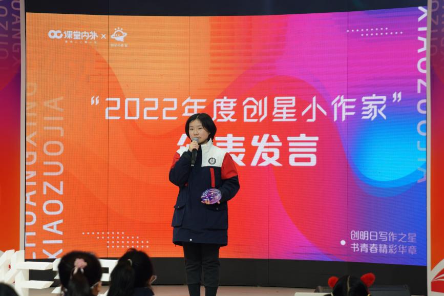 周丹彤作为“2022年度创星小作家”代表发言