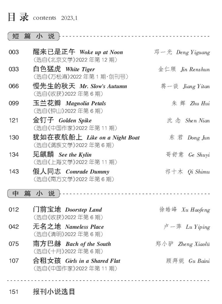 《小说月报》2023年第1期目录