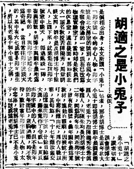 《胡适之是小兔子》,原载上海《立报》,1949年3月19日。