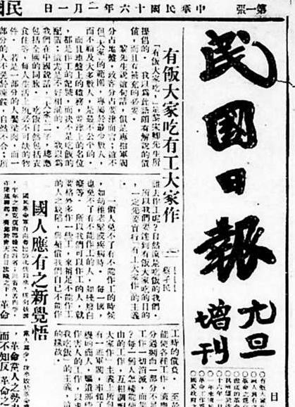 《民国日报》元旦增刊头版(局部),1927年1月1日。