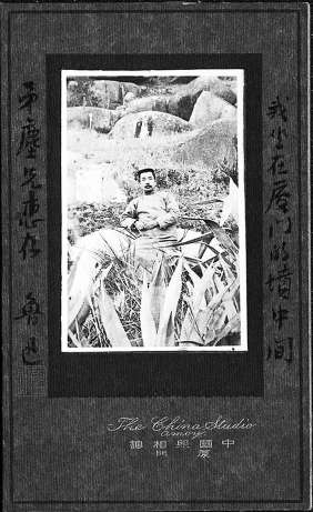 俞氏时隔二十年的这两次忆述,两次提到鲁迅的那张单人照,因为照片本身迟迟没有现身于世,也令后世读者亟欲一睹真容的兴致倍增。其实,若在1949年10月新中国刚刚建立之际,当年有机会去参观一下在北京图书馆举办的“鲁迅先生作品展览会”的读者,就会惊喜地发现这张照片,就曾现身于展览会上。如今,这张弥足珍贵的照片,已为北京鲁迅博物馆藏品。鲁迅当年将其赠与作家章廷谦(字矛尘),并题上了“我坐在厦门的坟中间”。