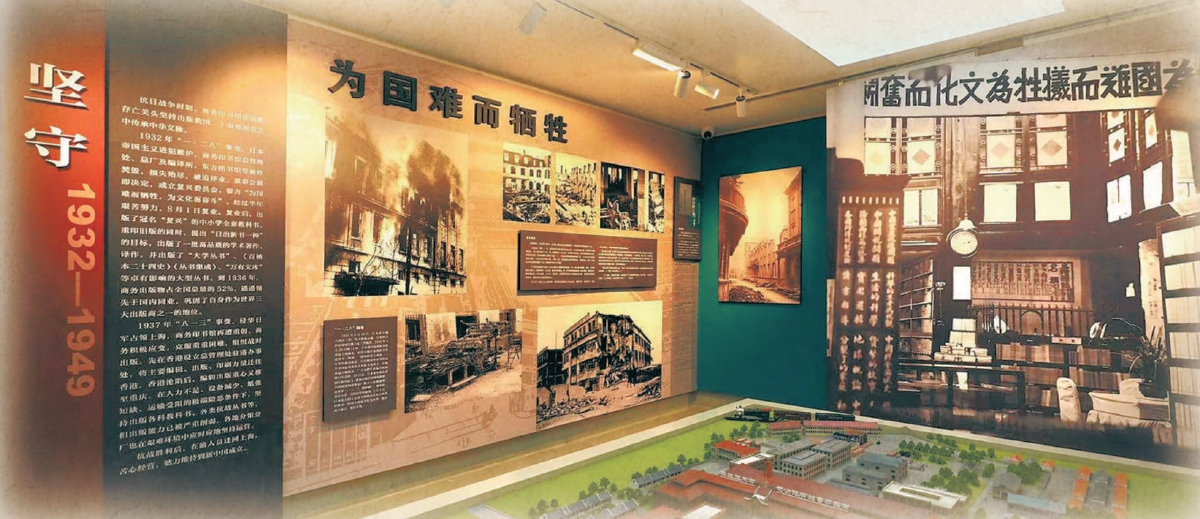 20世纪20年代上海宝山路商务总部建筑群模型位于陈列馆最显要位置,再现了商务印书馆当年的兴盛景象。