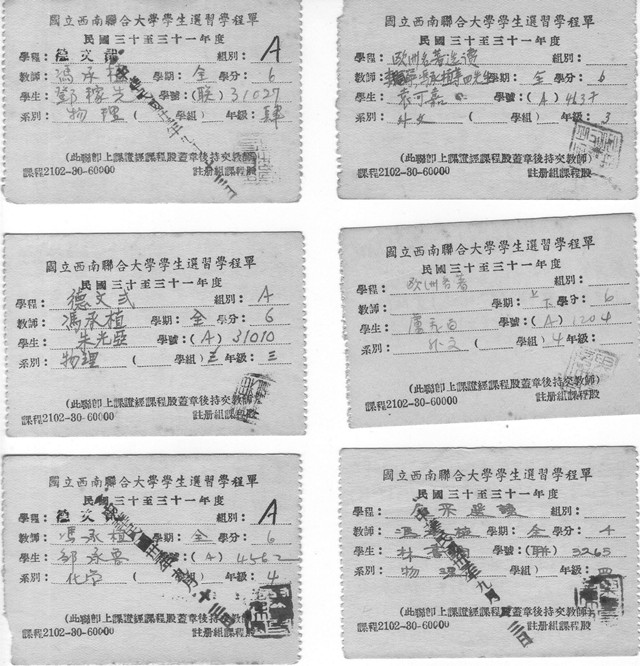 西南联大学生选课卡正面及背面冯至研究杜甫手抄资料