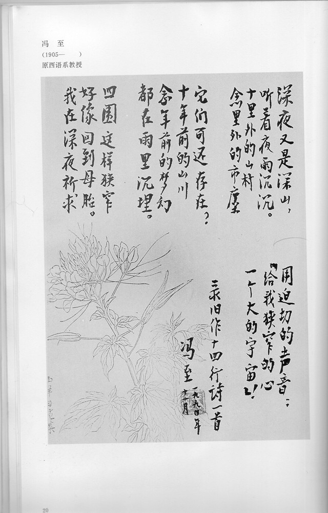 冯至手迹 十四行诗《深夜又是深山》