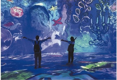 观众在安徽省美术馆“马克·夏加尔:物色之梦数字艺术展”参观。