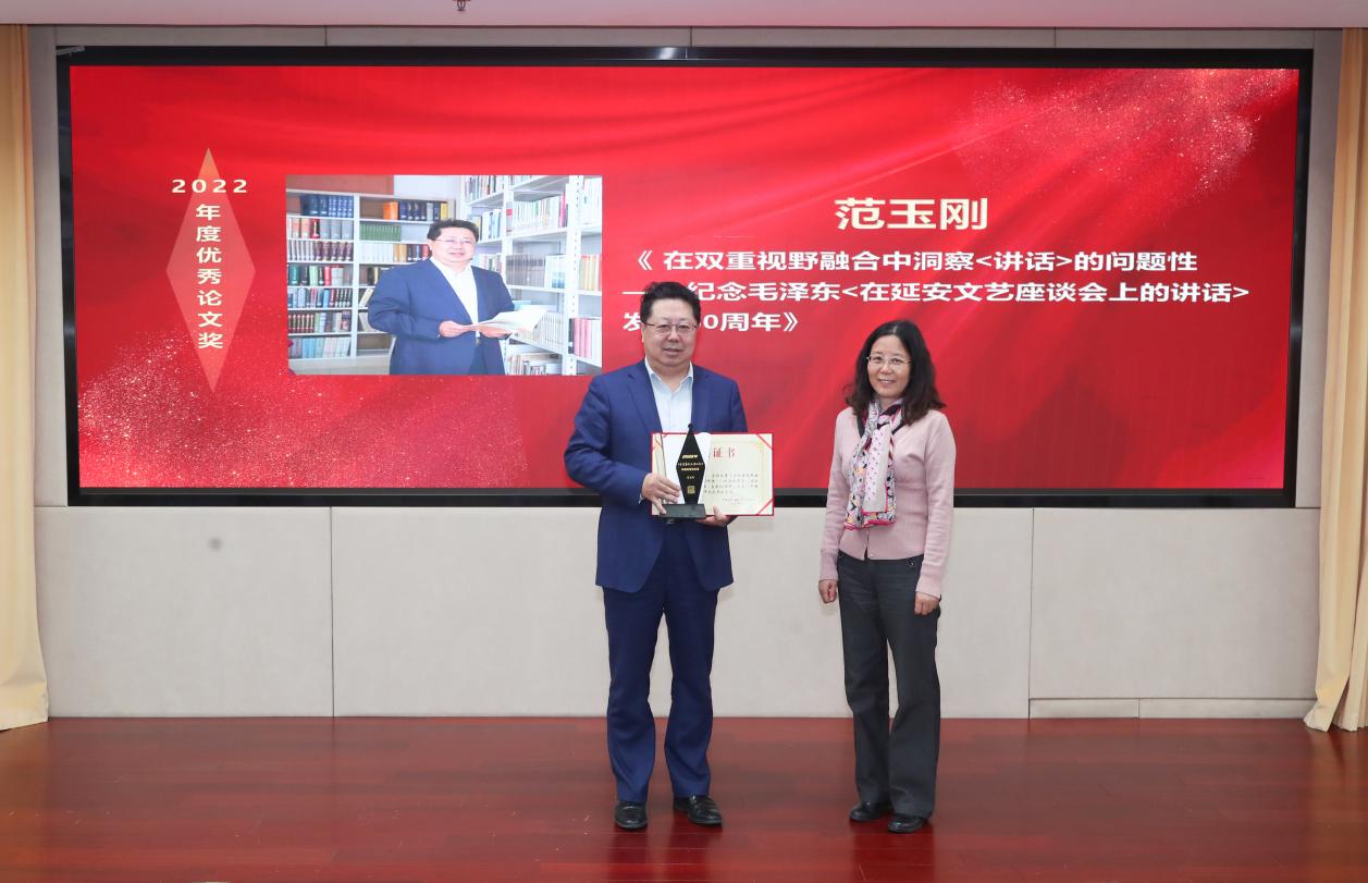 《新华文摘》编审陈汉萍为范玉刚颁奖