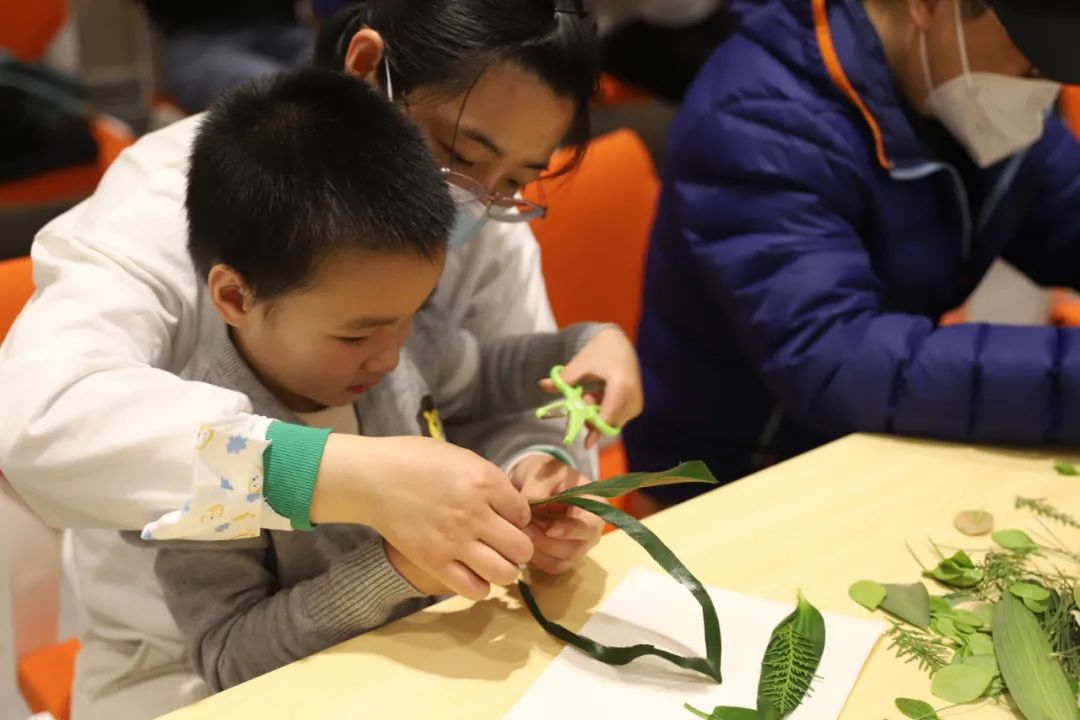 活动现场小读者在做手工树叶画