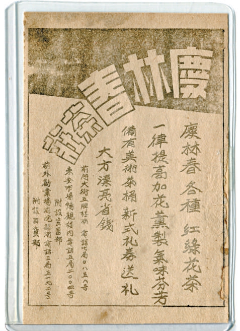 上世纪四十年代北京庆林春广告纸。(作者自藏)
