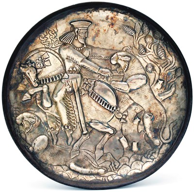 萨珊王朝帝王狩猎纹鎏金银盘。