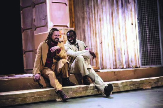 面朝未来的契诃夫秉持理性的科学进步观,他曾说“在电器和蒸汽里,比在洁身和素食的主张里更富有爱人类的热情”,但艺术家的直觉与自然生命意识又让他时时奏起忧伤多虑的曲调。早在创作《万尼亚舅舅》的1896年,他就超前塑造出了阿斯特罗夫医生这样一个生态环保主义先知,他热爱森林,热爱大自然,全力投身环保,痛心于“人们不去创造,却在毁灭上帝赐给他们的东西”,慨叹“在人与人的关系上,在人对大自然的感情上,那种天真、纯洁、坦白都没有了”。法国优秀黑人演员西里·茹埃扮演了阿斯特罗夫医生,他的气质和表演刚健、舒展、自然、松弛,为角色注入了新鲜血液与现代形态,使之成为全剧最具有穿越意涵的焦点人物。