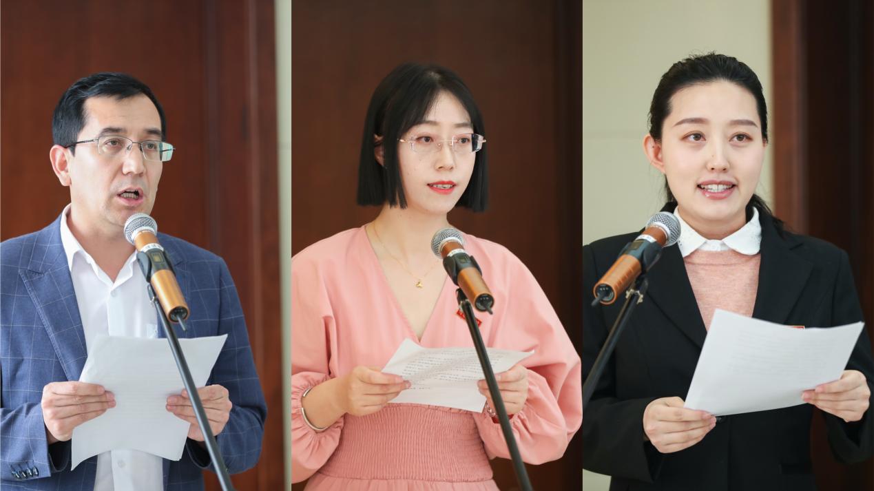 艾力?布拉丁、薛菲、唐嘉璐三位学员代表在开学典礼上先后发言,分享了各自在文学创作过程中的体会和领悟,表达了参加鲁院文化润疆作家培训班学习的喜悦和感谢之情,他们郑重承诺,将珍惜宝贵的学习时光,脚踏实地,提高理论素养,开拓艺术视野,丰富文化底蕴,成为“文化润疆”的先锋战士,点燃更闪耀的文学之火,并把火种带向更广阔的疆域。