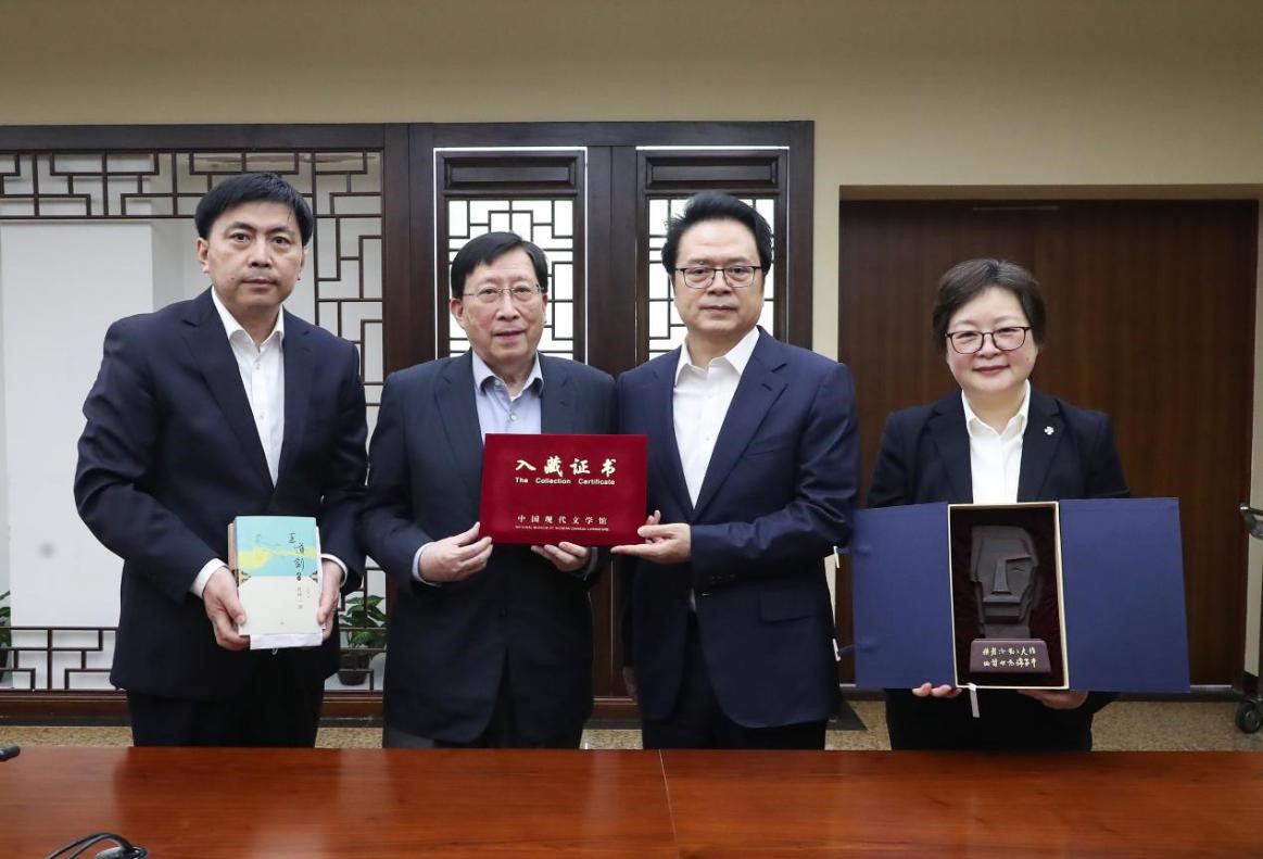 参观结束后,举办了刘兆玄作品《王道剑》入藏现代文学馆仪式。来访的各位嘉宾纷纷表示,此次参访内容丰富,收获满满,看到了中国现当代文学波澜壮阔的历史,感受到了两岸文学同宗同文的血脉亲情。