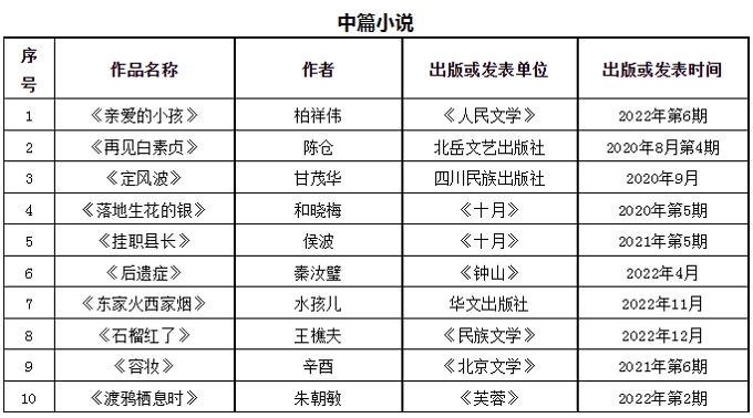 首届“石峁文学奖”初选作品名单