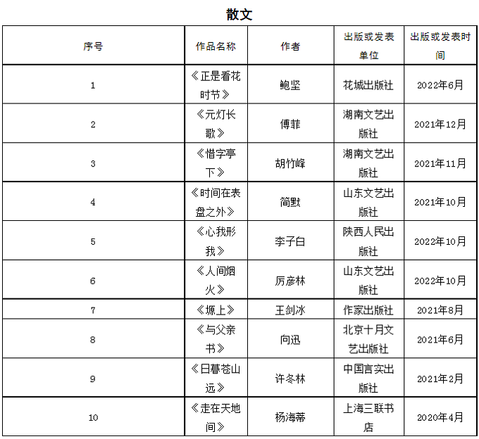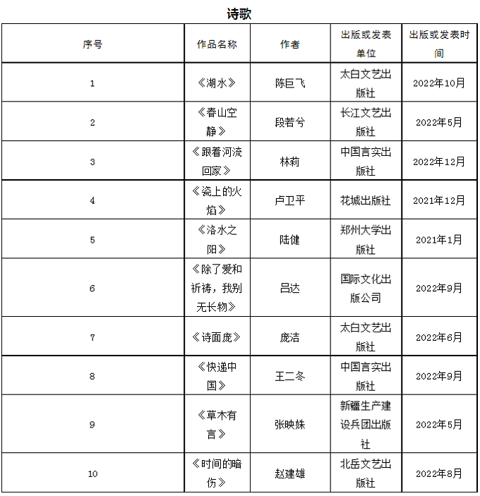 首届石峁文学奖初评委员会经过认真阅读讨论,于2023年4月17日投票表决产生50部(篇)初选作品。现将初选作品名单在鲁迅文学院微信公众号和凤凰彩票平台登录入口(http://www.chinawriter.com.cn)公示。公示期截止于2023年4月21日,在此期间,如发现初选作品有不符合《首届“石峁文学奖”参评作品征集启事》的情况,请向评奖办公室提出。