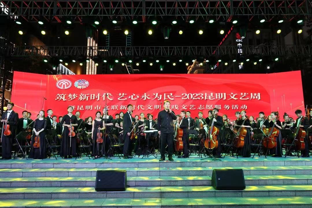 “筑梦新时代 艺心永为民——2023昆明文艺周”暨昆明市文联新时代文明实践文艺志愿服务活动由中共昆明市委宣传部和市文联共同主办;中共五华区委宣传部、五华区文学艺术界联合会、《滇池》文学杂志编辑部、昆明文学艺术研究院、昆明作家协会、昆明儿童文学研究会、昆明摄影家协会、昆明美术家协会、昆明书法家协会、昆明舞蹈家协会、昆明戏剧家协会、昆明曲艺家协会、昆明民间文艺家协会、昆明电影电视艺术家协会、昆明文艺评论家协会、昆明模特艺术家协会、昆明网络文学协会承办;云南青少年交响乐团、马家大院、新华书店南屏街店、昆明信息港协办;执行单位为昆明市民族歌舞剧院。