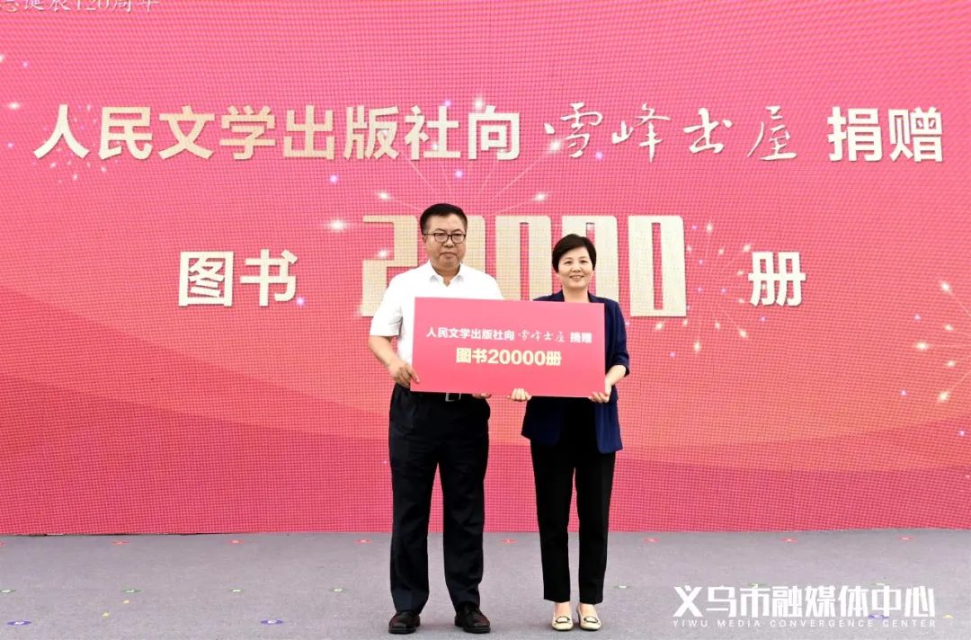 冯雪峰同志是新中国成立后人民文学出版社的首任社长。会上,为支持雪峰书屋建设,人民文学出版社特向义乌捐赠图书2万册。