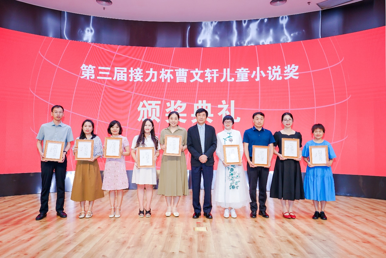 颁奖嘉宾曹文轩与第三届接力杯曹文轩儿童小说奖获奖作者合影
