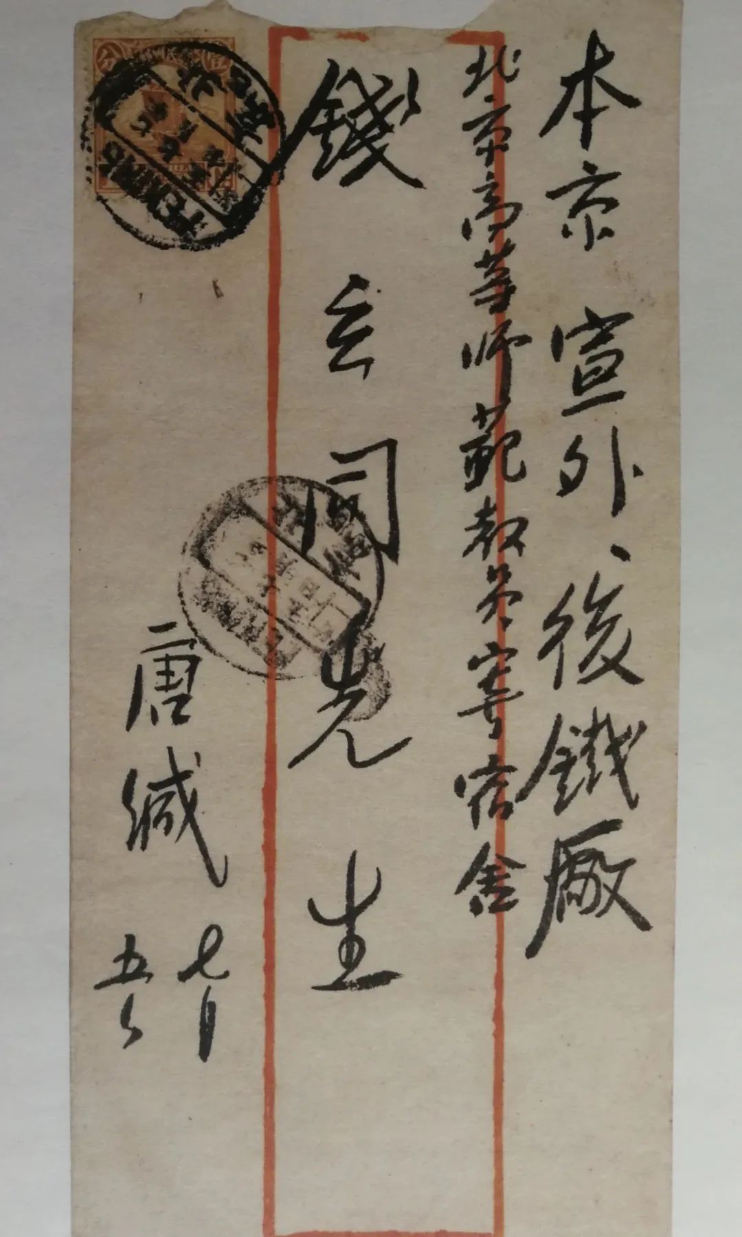 鲁迅1918年7月5日致钱玄同信的信封正面