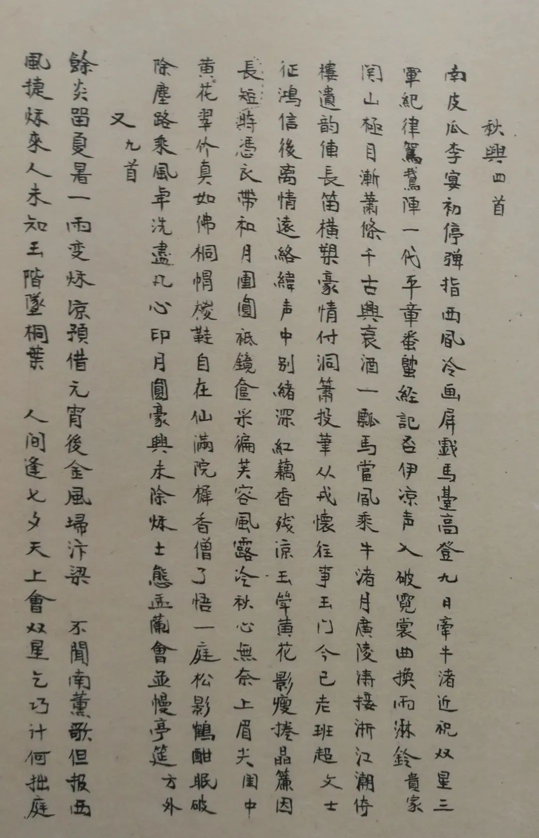 鲁迅祖父周福清(字介孚),1893年秋贿考犯案、牵连全家,而且性情乖戾。这在幼年鲁迅的心灵上留下了创伤。关于这种创伤及其在鲁迅作品中的印记,王培元的论文《家族哀史与鲁迅小说的骨骼和血肉》(《文学评论》2023年第1期)做了细致、深入的分析。周建人在《鲁迅故家的败落》中披露,1919年12月鲁迅返回绍兴、卖掉老家的房子迁居北京的时候,烧掉了祖父几十年间的全部日记。不过,查鲁迅当时的返乡日记,却看不到处理祖父日记的记载。也许,鲁迅是要将祖父从自己的记忆中彻底剔除出去——连剔除的过程都不留痕迹。这大概是他在自传中写及父母而不提祖父、祖父在其公开发表的文字中缺席的原因。然而,周福清指导以少年鲁迅为首的“诸孙”学诗的短信却保留下来了,青年鲁迅手抄的祖父诗集《桐华阁诗钞》,也和他手抄的祖父所书《恒训》一样保留下来了。《桐华阁诗钞》被收入《鲁迅手稿全集》“辑校古籍编”的第五册(总第27册),从中可以看到周福清的精湛诗艺与豪迈诗情。这里引录诗集所收《秋兴四首》的第二首。曰: