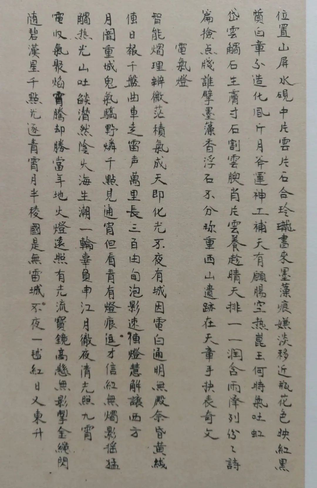 鲁迅抄《桐华阁诗钞》是在“光绪戊戌以前”,即1898年之前,比1899年年末抄《恒训》早了至少一年多。鲁迅“走异路,逃异地”去南京求学是在1898年5月,抄《桐华阁诗钞》的时候还在绍兴。那么,《桐华阁诗钞》是否给了十六七岁的鲁迅以某种影响呢?影响是应当存在的——文学层面的影响与思想观念层面的影响。《桐华阁诗钞》中存在着多种现代元素,所收《洋场杂咏十首》《水月电镫》等诗作,都写及上海开埠期的国际通商、洋房、自鸣钟、路灯、铁路等等。诗集中的最后一组作品是《电气灯》,共三首,且录第一首于此: