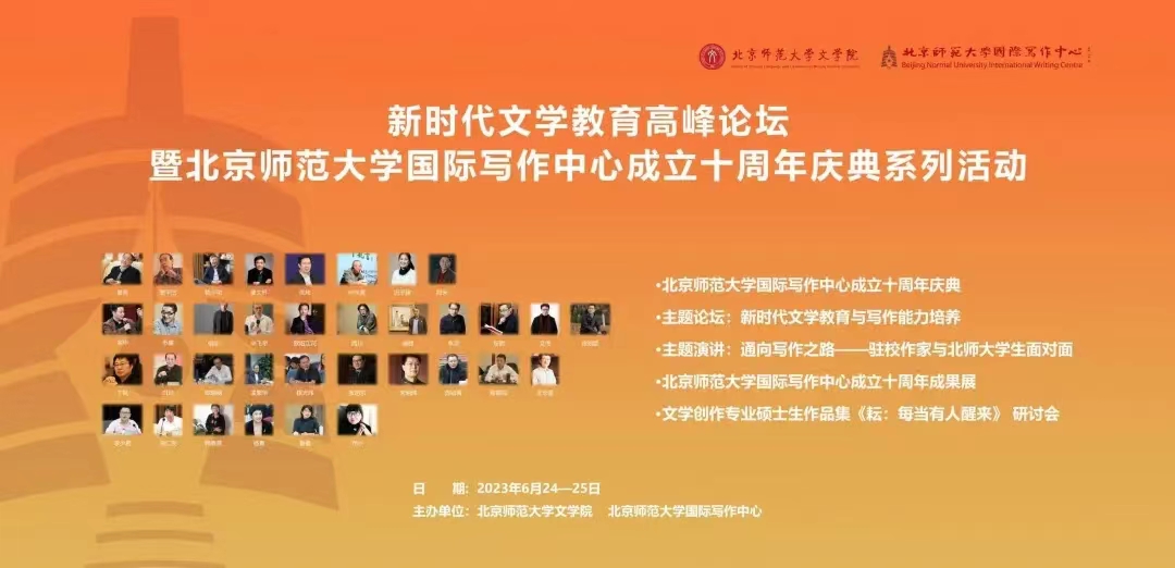 6月24日下午,北京师范大学国际写作中心成立十周年庆典系列活动之“新时代文学教育与写作能力培养”的主题论坛举行,曹文轩、陈晓明、孟繁华、张清华、张旭东、宗仁发、陈福民、王宏图、宋明炜、李少君、徐可、何平、杨青、徐则臣、鲁敏、乔叶、张柠、张莉、马兵、杨庆祥、饶翔、黄平、李利芳、吴景明、丛治辰、季亚娅、徐晨亮、李蔚超、张同道、李兰玉、张菁、何同彬、曾攀、崔欣、陈晖、沈庆利、梁振华、张国龙、姜肖、白惠元等出席会议。