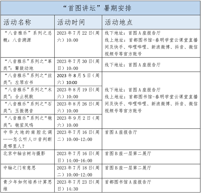 除少儿活动外,首图今夏还将继续开设“首图讲坛”系列活动、“牡丹亭传习”文本解读以及“全市诵读大赛”等活动。