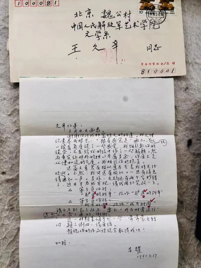 作为一对“忘年交诗友”,昌耀与王久辛之间,不仅仅书来信往,更是诗来文往。