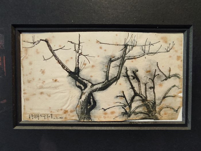 金宇澄的绘画经历可以追溯到其青年时期在东北知青的日子,2011年以《繁花》插图开始画画,本次展出的《梧桐与无花果》作于1976年,是他那个时期保留下来的唯一一件手稿。在梧桐与无花果旁边的作品是一张艺术家自画像。
