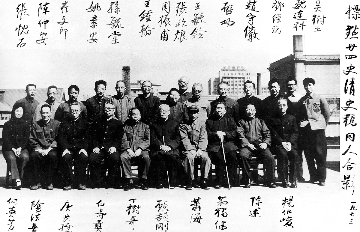 《清史稿》标点人员合影,后排左五为孙毓棠。名字由启功手写。
