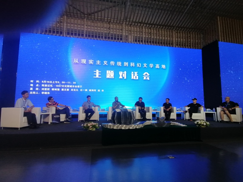 肖克凡、石一枫、姚海军、超侠、杨遥等作家以及蒋述强、窦文章等科学家与刘慈欣对话、交流对现实主义和科幻文学的体会与见解。活动由凤凰彩票社联部主任李晓东主持。