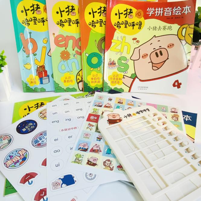 “开学啦!小猪唏哩呼噜入学必备”系列严格依据一年级课标编写,涵盖63个必会拼音、310个必会汉字、63首儿歌、22个基础笔画以及64个常见偏旁,共有四套图书,分别是“小猪唏哩呼噜学拼音绘本”(6册),以绘本故事的形式讲授一年级应知应会的拼音知识;“小猪唏哩呼噜入学准备100分”(6册),通过场景化趣味练习题串联起小学入学阶段的语言、数学和拼音知识;“小猪唏哩呼噜汉字描红”(4册),帮助学生掌握运笔训练、基本笔画、笔顺等知识;“小猪唏哩呼噜游戏故事”(2册),帮助小朋友们在学完基础知识后用阅读作为回顾所学拼音、基础汉字、基础数学知识并融汇拓展的学习方式,提升孩子的自主阅读能力。礼盒中还配套赠送了72张趣味拼音卡片、2页拼音认知挂图、3张贴纸以及1套好习惯自律打卡器,帮助孩子顺利进入小学学习。